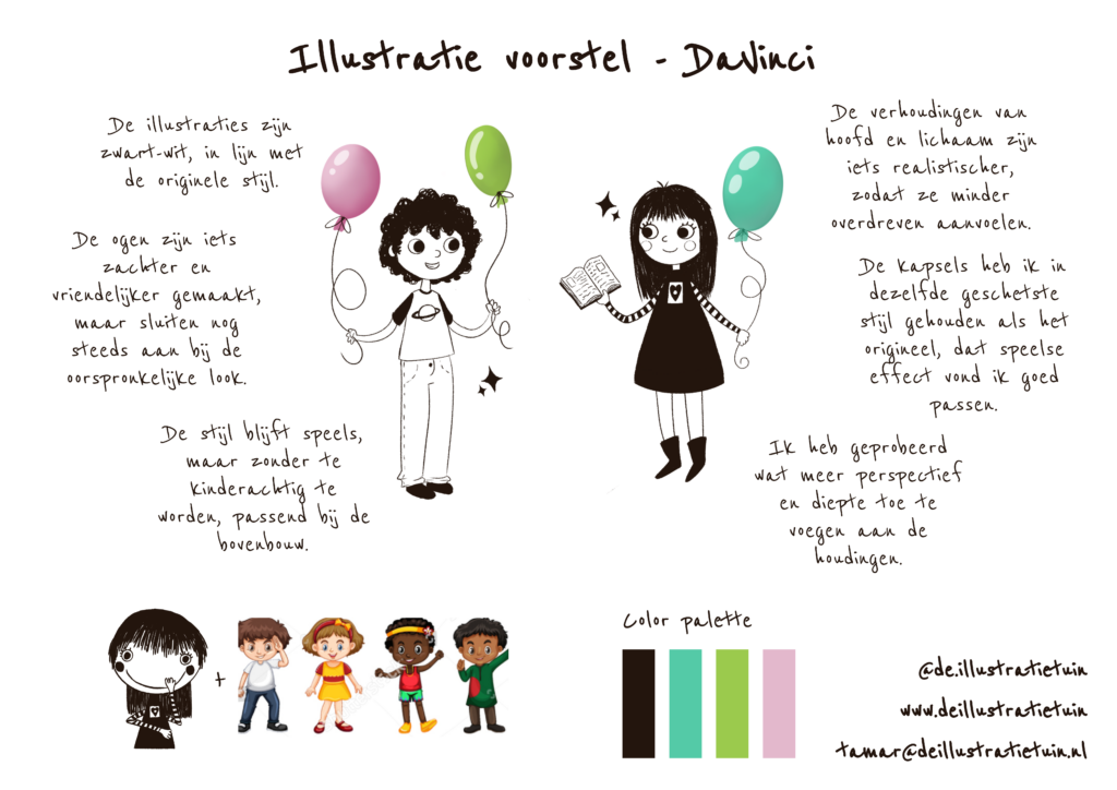 Voor een opdracht voor het bedrijf DaVinci heb ik illustraties ontwikkeld die gebruikt worden ter ondersteuning van hun educatieve werkbladen. Ik moest een herontwerp maken van de originele poppetjes. Het doel van deze illustraties was om de inhoud van de werkbladen op een speelse en toegankelijke manier te versterken. En de poppetjes inclusiever te maken, zodat meer kinderen herkenning hebben met de poppetjes in hun werkbladen.