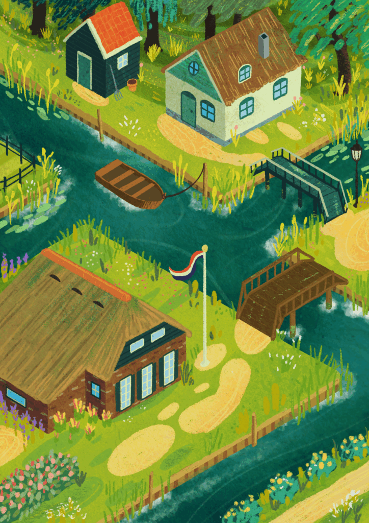 Naast mijn andere werk maak ik ook poster- en printdesigns. Deze ontwerpen variëren van sfeervolle landschap illustraties tot speelse kinderillustraties. Ik vind het leuk om te schakelen tussen verschillende stijlen en doelgroepen: van rustige, gedetailleerde beelden die een ruimte versterken tot vrolijke, verhalende illustraties die de fantasie prikkelen.